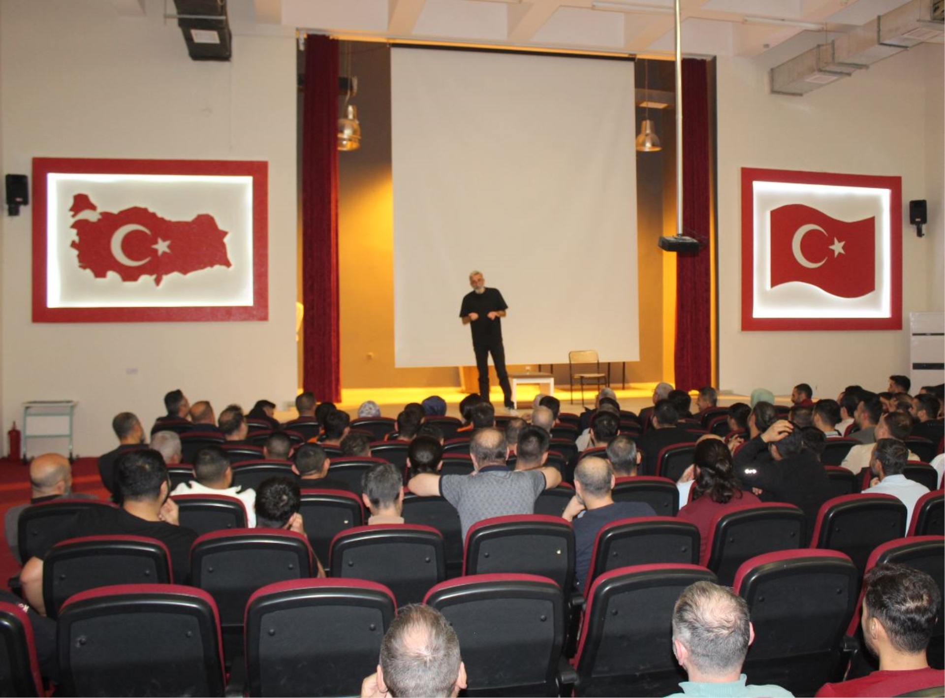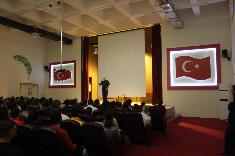 Şanlıurfa 1 Nolu T Tipi Kapalı Ceza İnfaz Kurumumuzda hükümlü tutukluların iyileştirme çalışmalarıyla topluma kazandırılmaları faaliyetleri kapsamında 07.11.2025 tarihinde Şanlıurfa 1 Nolu T Tipi Kapalı Ceza İnfaz Kurumu Müdürlüğü konferans salonunda Şanlıurfa Büyükşehir Belediyesi Kültür ve Sosyal İşler Müdürlüğü  sanat ekibi tarafından  "Stand Up Gösterisi "  programı gerçekleştirildi.